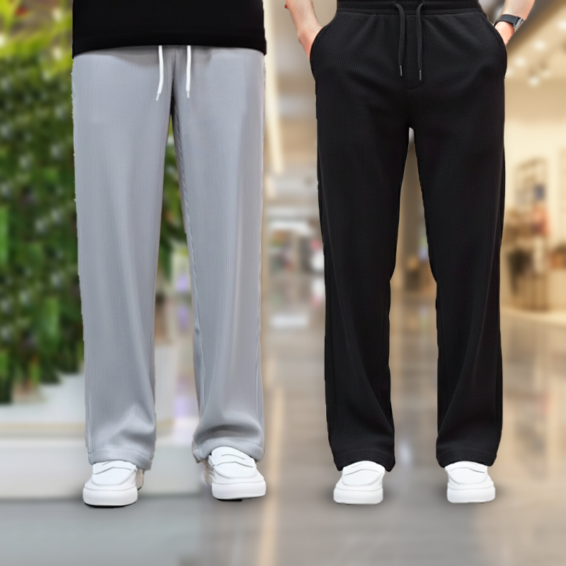 Soft, stretchable 2/2 rib fabric trouser designed with a relaxed straight-fit cut for maximum comfort and style. Features an elastic waistband with drawstring, smooth fall, and side pockets—ideal for casual wear, gym, travel, or daily use.