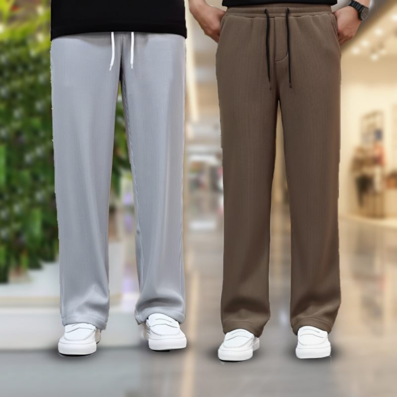 Soft, stretchable 2/2 rib fabric trouser designed with a relaxed straight-fit cut for maximum comfort and style. Features an elastic waistband with drawstring, smooth fall, and side pockets—ideal for casual wear, gym, travel, or daily use.